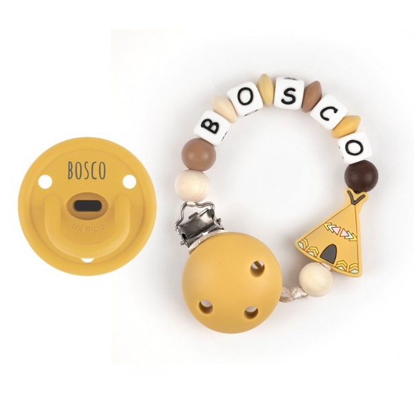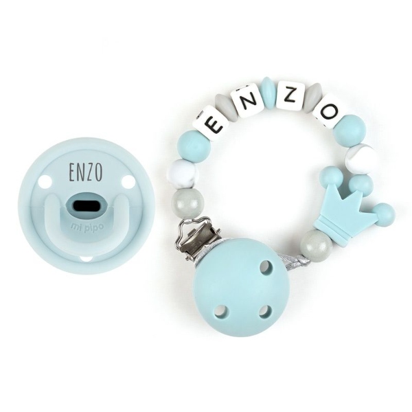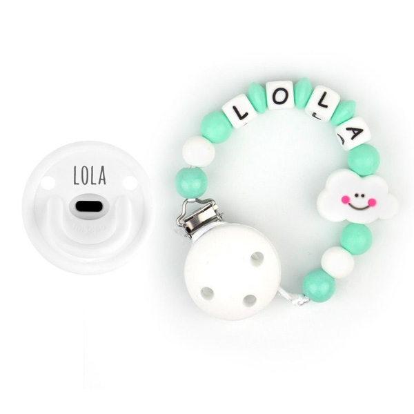 - Cadenita para el chupete: a juego con el chupete, realizada con silicona libre de BpA, cumpliendo con todas las medidas de seguridad